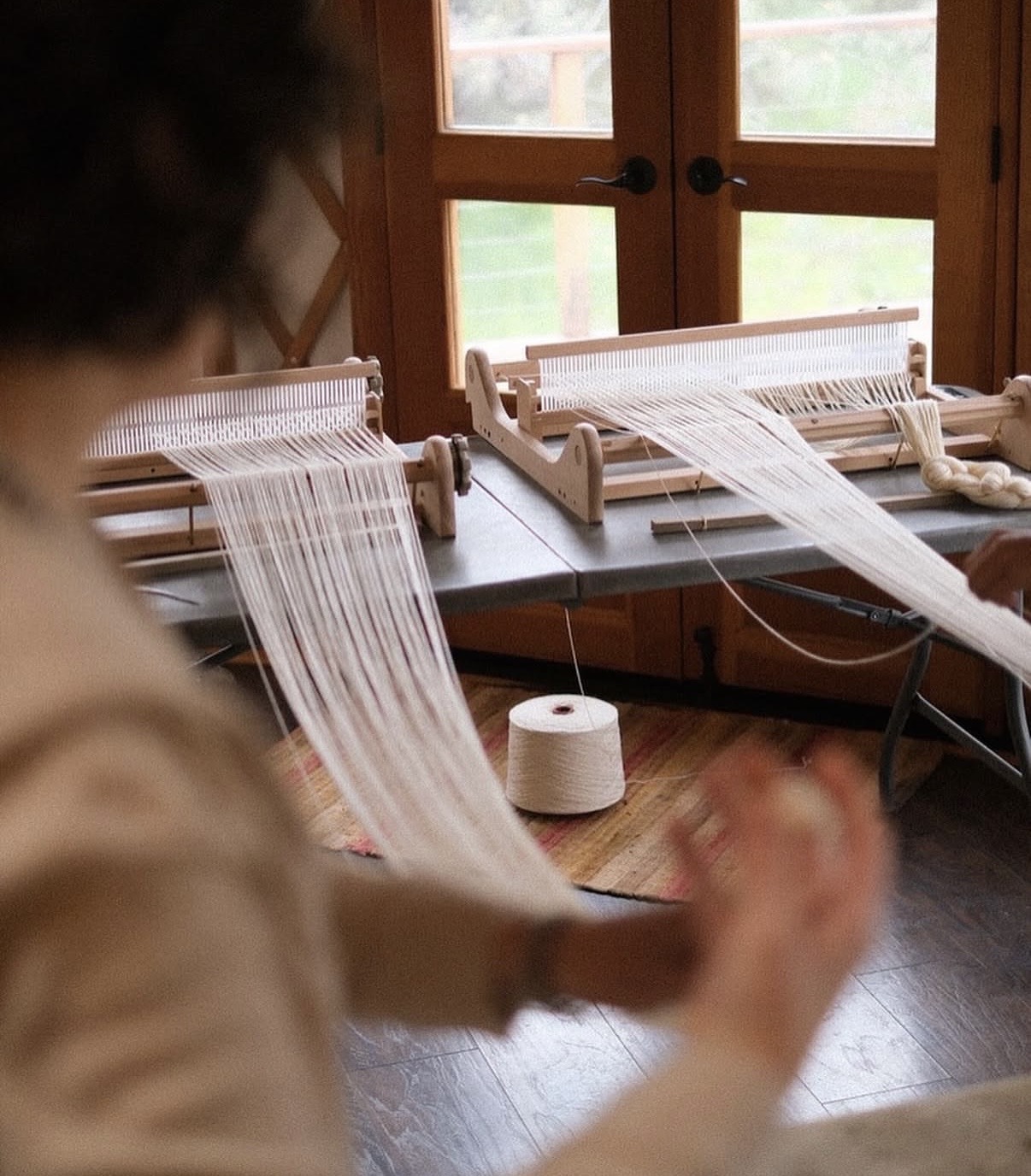 Devon Smith finds her inspiration from folk art, tide pools, desert rocks and woolen herds. She first began weaving in 2020 learning tablet weaving, and experienced an immediate remembering and passion for all things woven. She has learned a lot from her talented sisters and since studied with Annyea Healy. Devon currently finds home in the Methow Valley, WA.