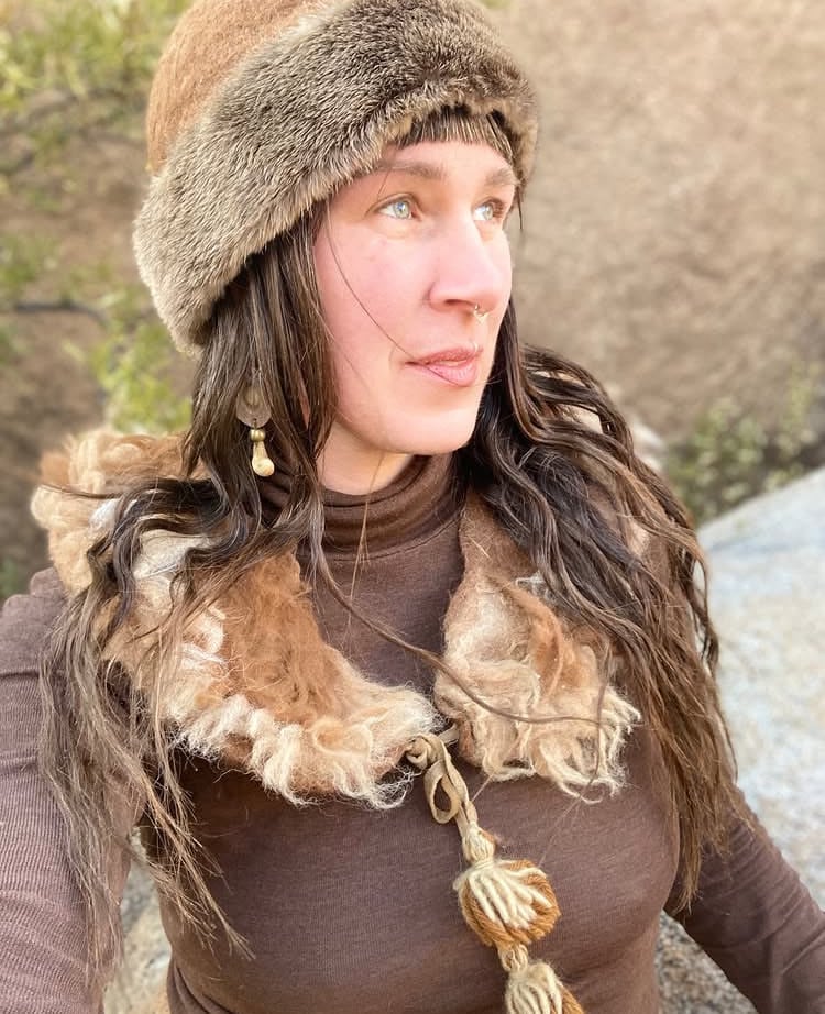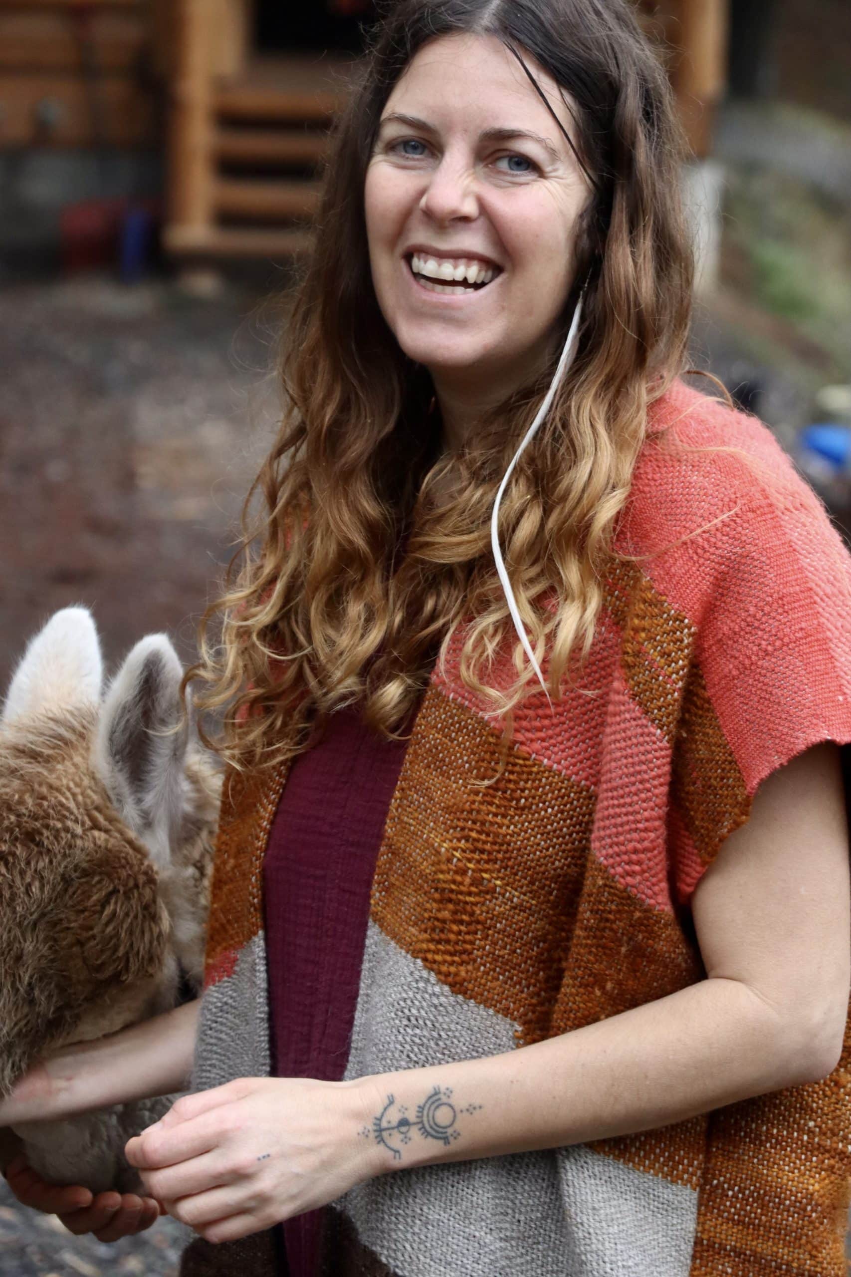 Annyea Healy has been a lover of both animals and fiber arts since childhood. She’s always been drawn towards yarn – the many colors and textures, and the infinite possibilities of what it can become. Eventually, she also became fascinated by where it comes from. What began as a hobby became a lifelong path, as her love for fiber arts and animals came together to form a way of life – raising animals for fiber, spinning, natural dying, felting, crocheting, and weaving new life into those threads, as well as teaching fiber arts workshops. Her passion for this work is rooted in her connection with beloved fiber animals and Mama Earth, her desire to honor our ancestors and the wisdom within these ancient crafts, and her lived experience that to weave is to pray, remember, heal, connect, and hope. Annyea spends most of her time on her homestead with her family, her community, her many animals, her gardens, and her looms.