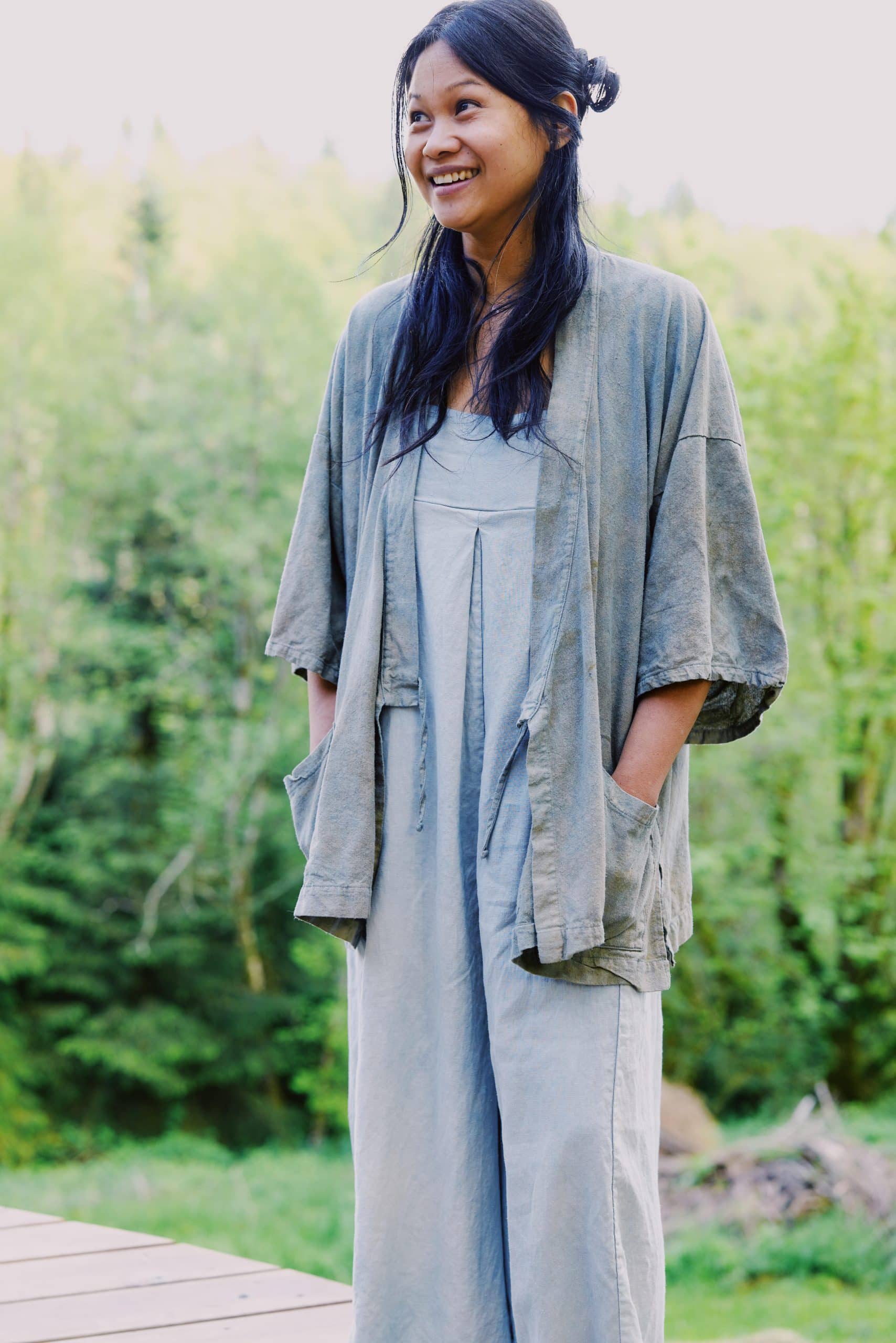 Janessa Fortes Bautista is a plant dyer, designer, and plant dye gardener living in the Columbia River Gorge. For 25 years, she has been exploring and playing with the vibrant pigments of plants. Janessa is the creator of Rainbow and Yarrow—a product line where she designs and dyes every piece using plants grown in her own garden.
